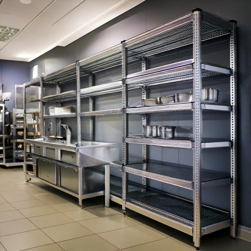 Durable stainless steel shelving for commercial kitchens! Maximize storage efficiency with heavy-duty, rust-resistant racks. Perfect for restaurants, hotels, and supermarkets. Organize your kitchen with strength and reliability!